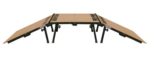 The Freshpark Fun Box and Wedge Ramp Combo can be used on a small driveway or sidewalk, or anywhere else you decide to take it! Comes with two Wedge Ramps and one Fun Box / Manual Pad. Connect the Wedge Ramps to each other or to the Fun Box, or convert the Fun Box into a Manual Pad with the second set of legs (included). You can place the ramps near other obstacles to jump them. All three ramps feature Freshpark’s patented folding design; they are extremely portable and can be quickly set up or put in your trunk. The ramps have durable powder-coated steel frames, legs, coping and toes, and are surfaced with a weatherproof Urethane/ABS blend.Freshpark Combo-Kit 5 Fun Box and Wedge Ramp Combo Specifications